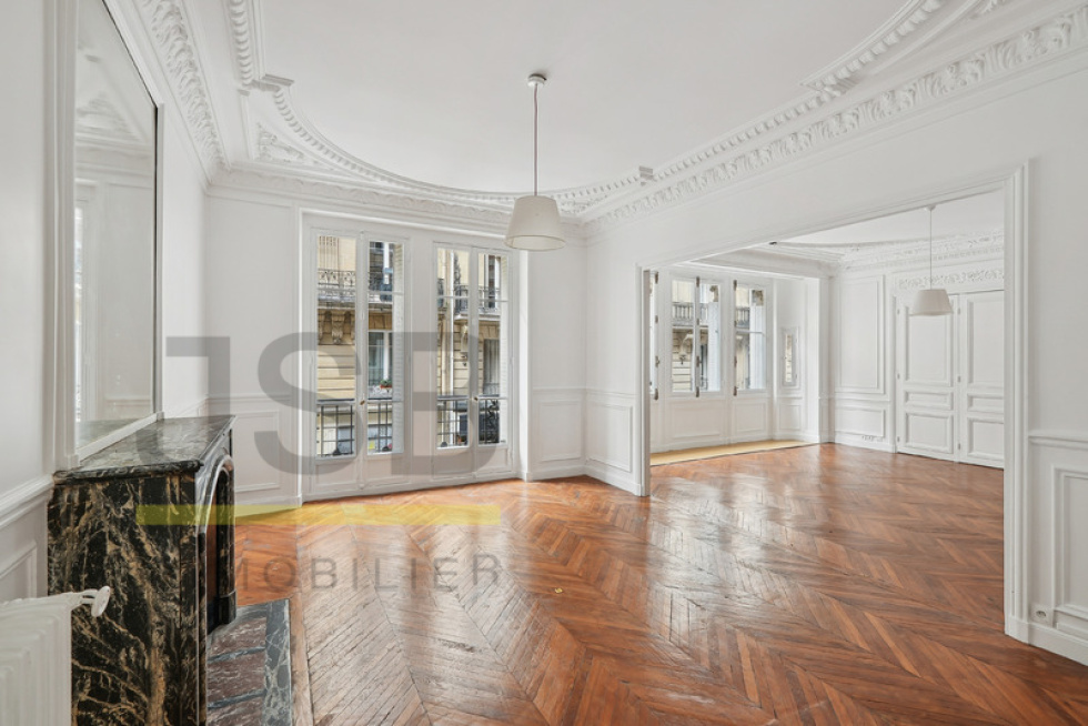 Dans un immeuble haussmannien de grand standing avec ascenseur, découvrez cet appartement familial d’exception de 160 m², alliant charme de l’ancien et volumes généreux. Ce bien rare se compose de : Une double réception élégante avec parquet point de Hongrie, moulures et cheminées, Quatre chambres lumineuses et confortables, Une cuisine indépendante aménagée, Une salle de bains, Deux WC. Ses prestations de caractère et son adresse recherchée font de ce bien un appartement d’exception, idéal pour une famille souhaitant profiter de la vie parisienne dans un cadre prestigieux. Chauffage collectif. Loyer : 4 500 € charges comprises / mois