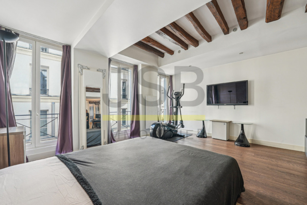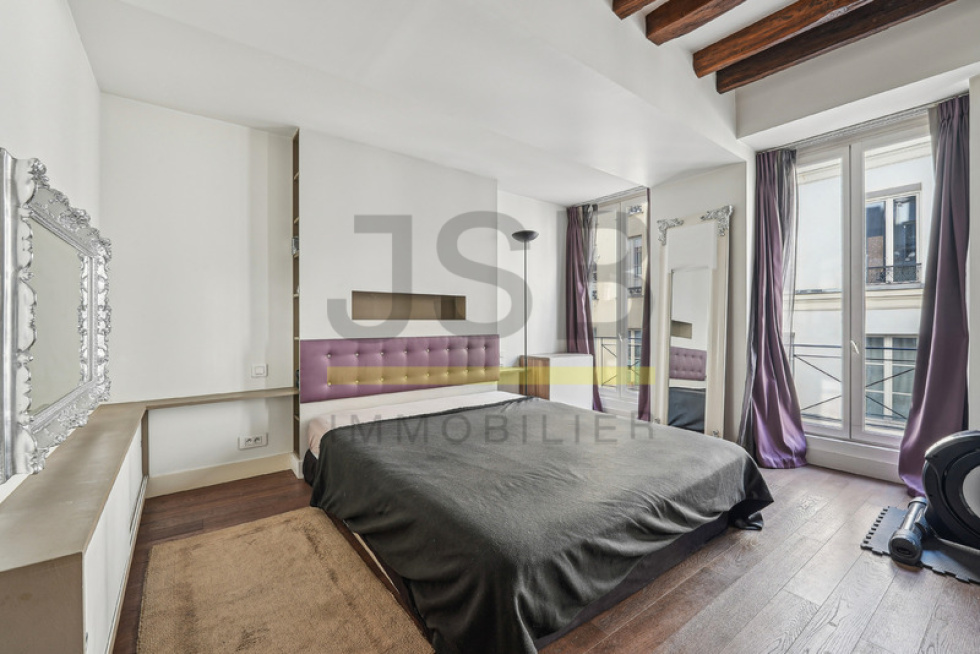 75002 - JSB vous propose rue de Clery, au 2ème étage d'une jolie copropriété entièrement rénovée (ravalement, cage d'escalier, toiture), un charmant appartement d'une superficie de 38 m2 (Carrez : 37,35 m2 / Au sol : 38,55 m2). Composé d'une entrée avec rangements, une grande salle d'eau avec wc, une pièce de vie traversante sur rue et sur cour, et un coin couchage. Parquet, poutres apparentes, calme, lumineux, charme de l'ancien et décoration contemporaine. Climatisation.