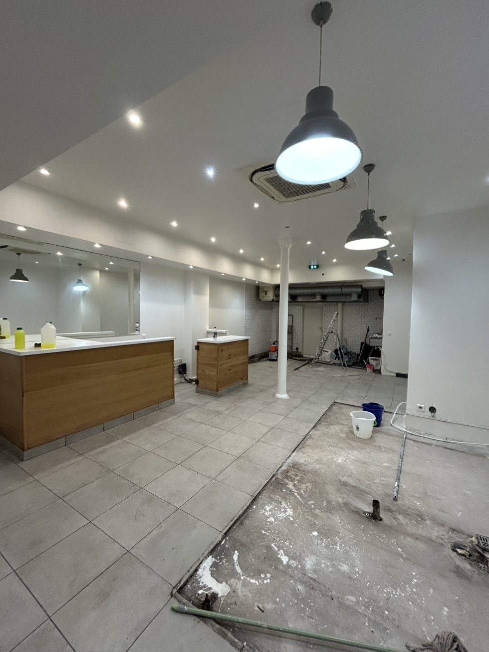 A louer une boutique avec climatisation, à usage de restaurant avec extraction de diamètre 400, d'une surface en RDC de 46m2, avec salle de restaurant, cuisine à poser au fond, porte de secours donnant sur une cour pour accès poubelle, un sous sol accessible par un escalier dans le local d'une surface de 17m2, avec WC Façade d'environ 5,5 mètres, droit de terasse, climatisation et extraction Travaux d'aménagement à prévoir. A visiter rapidement, emplacement très commerçant et sortie de métro en face Enseignes voisine : Mc Do, cinéma, ....