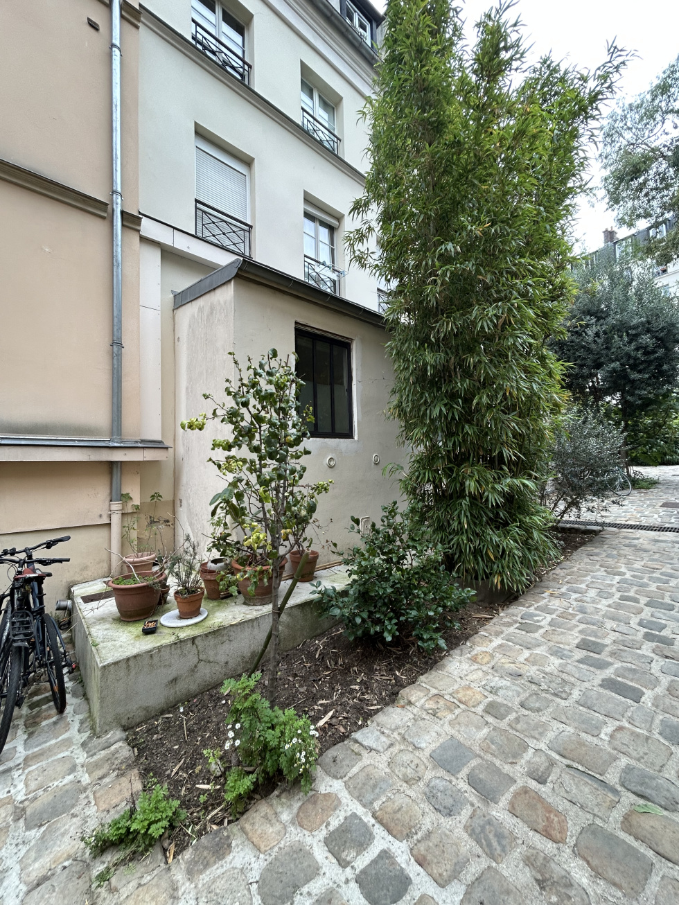 A céder sur cour arborée , la campagne à Paris, un local commercial lumineux comprenant un RDC de 70m2 comprenant une petite entrée amenant à une première pièce, garnde pièce principal dont une pièce indépendante avec une cuisine, une petite pièce avec lavabo et rangement et un WC Travaux à prévoir, idéal bureaux, au calme et très charmante copropriété Activité : tertiare, médical , show room .....