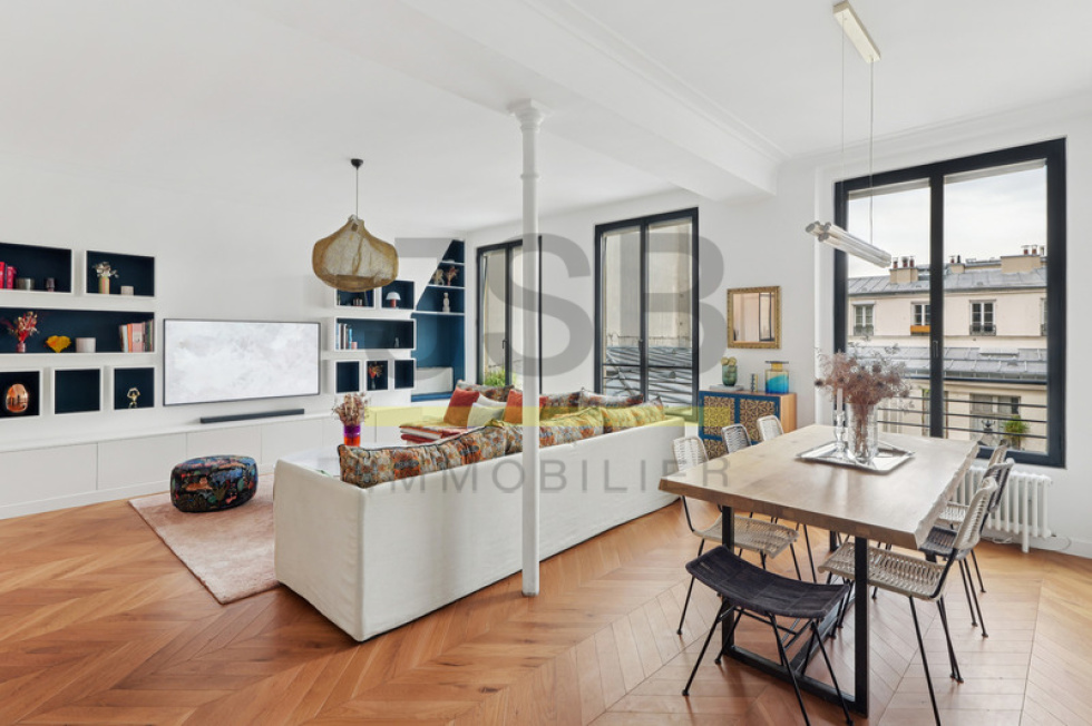 Au cœur du 2ᵉ arrondissement, JSB vous présente un appartement familial rénové récemment par un architecte, avec des finitions de qualité et une décoration soignée. Situé au 3ᵉ étage d’une copropriété elle aussi rénovée (ravalement et cage d’escalier), il profite d’une double exposition Est/Ouest, d’une vue dégagée et d’une grande luminosité tout au long de la journée, dans un environnement très calme. L’appartement se compose d’une entrée, d’une vaste pièce de vie de 55 m² avec cuisine ouverte et trois grandes fenêtres, d’une suite parentale avec salle d’eau et dressing, de deux chambres, d’une salle de bains avec douche, baignoire et WC, ainsi que d’un WC séparé. Une cave de 14 m² complète ce bien. Appartement très rare sur le secteur,