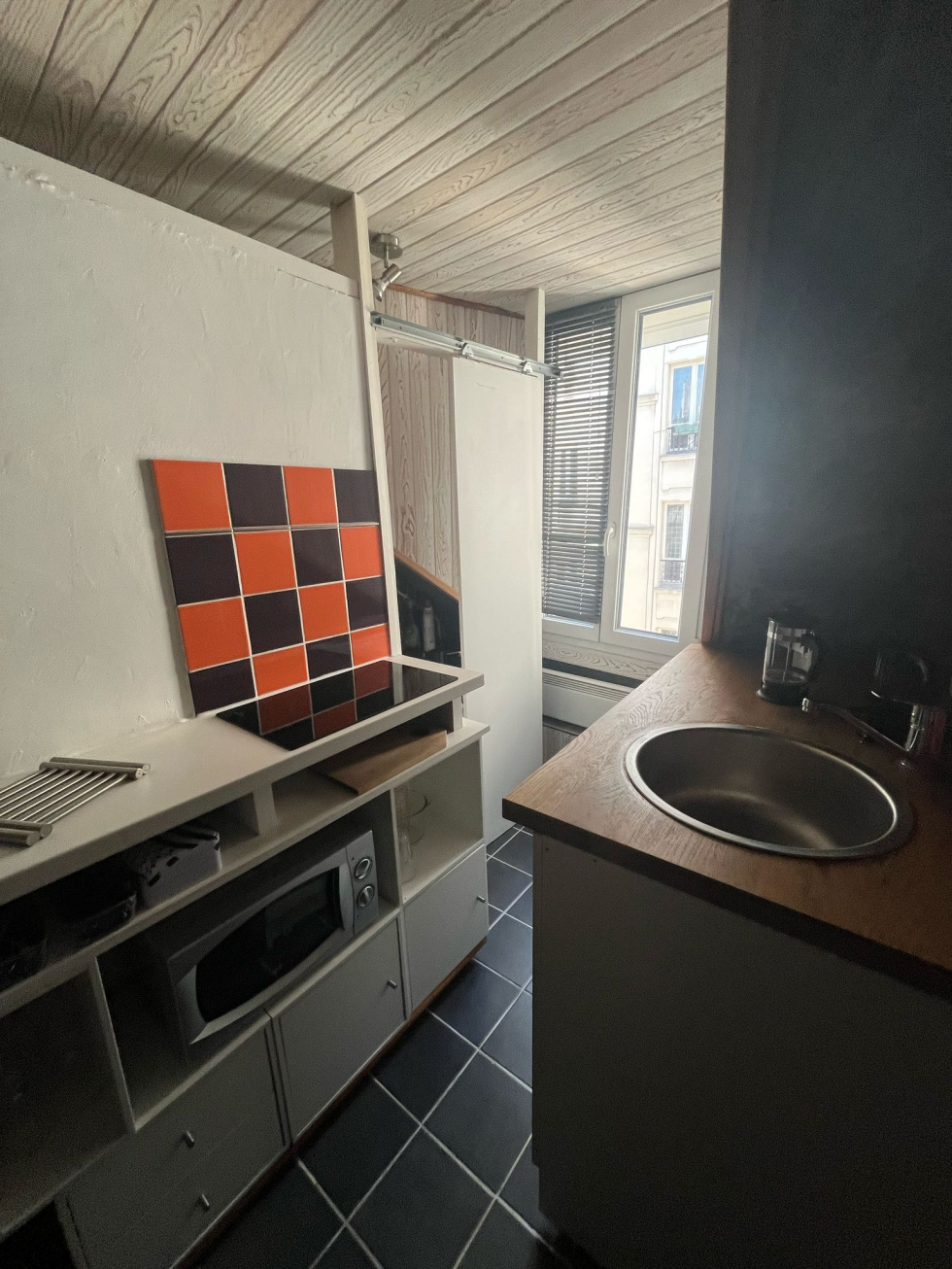 Exclusivité - 75002 - JSB vous propose un charmant studio de 15 m² (Loi Carrez : 14,64 m2 / Au sol : 17,09 m2) en plein cœur du quartier Sentier, sur la place d'Alexandrie. Situé au 4ᵉ et dernier étage sans ascenseur d’un immeuble bien entretenu, ce bien bénéficie d’une belle luminosité, du charme typique des appartements parisiens, et d’un cadre de vie paisible, tout en étant à proximité immédiate des commerces, restaurants et transports. Son agencement optimisé offre un espace de vie fonctionnel et agréable, idéal pour un pied-à-terre ou un investissement locatif. Produit rare.