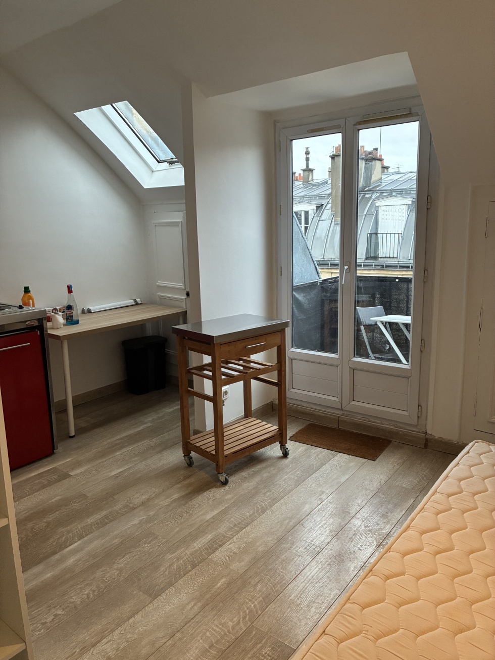75009 - Dans un bel immeuble bourgeois rue de Chantilly 75009, JSB vous propose en location, un charmant studio de 17 m2 au 6 ème étage sans ascenseur refait à neuf, avec WC et douche. Un petit balcon vue dégagée sur les toits de Paris et vue Sacré-coeur.Exposition Ouest.